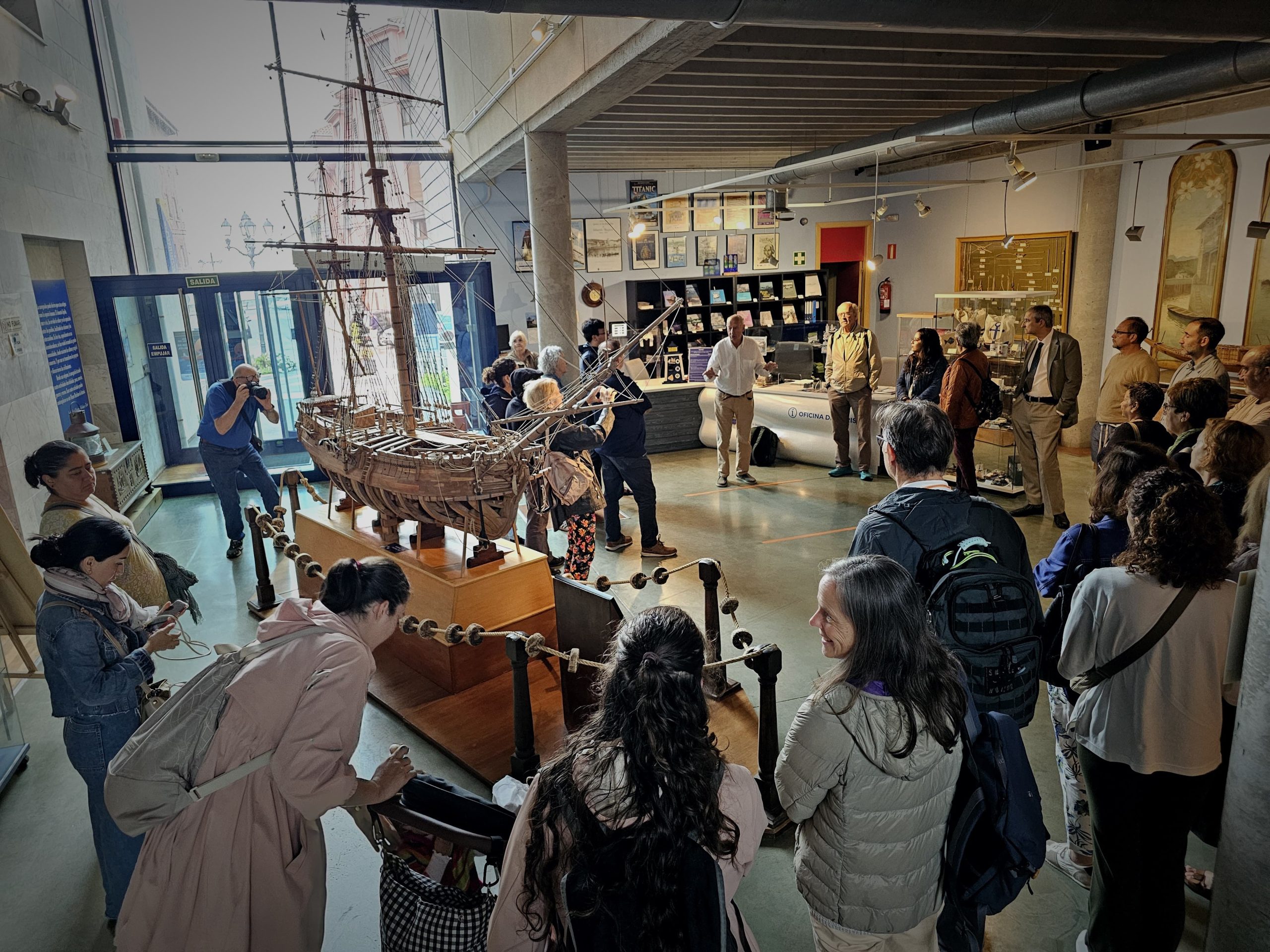 Desde primera hora de la mañana, los asistentes partieron de Gijón para embarcarse en una ruta que fusionó historia, ingeniería, paisaje y memoria colectiva. La primera parada fue en la Campa Torres y su faro, en Gijón, donde se aprecia uno de los recintos fortificados marítimos más importantes de la costa norte. Posteriormente, el grupo se trasladó a Luanco para visitar el Museo Marítimo de Asturias, donde fueron recibidos por su director, José Ramón García, cuyas explicaciones despertaron el aplauso unánime del público y ofrecieron una valiosa contextualización sobre la navegación, la pesca y la industria conservera.
